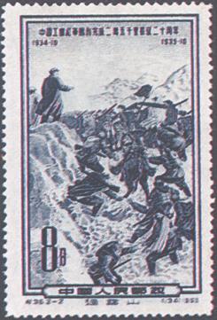 | 释义 | 中国工农红军胜利完成二万五千里长征二十周年 发行日期:1955年12月30日 齿孔度数:14 印刷版别:雕刻版 图幅:(1)40×28.5;(2)27.5×45.5 全张枚数:(1)70(7×10);(2)60(10×6) 原画作者:李宗津、黄丕星 设计者:孙传哲 雕刻者:孔绍惠 印刷:北京人民印刷厂营业分厂