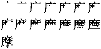 【提示】木,中间是竖,不是竖钩; 位于字或部件左边时,末笔捺改点。里面的林, 旧字形作𣏟。 *摩mā15画 麻部 【摩挲】〈口〉 (—·sɑ)用手轻轻按着反复向一个方向移动: ~衣裳。 另见mó(280页)。