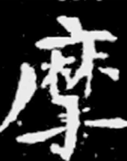 摩mó❶ 摩擦,来回移动:摩手│摩拳擦掌。 ❷ 摸,抚摸:按摩│摩弄。 ❸ 接近,迫近:摩天岭│摩天大楼。 ❹ 研究,探求:揣摩│观摩。 ❺ 摩尔,指物质量的国际单位。 ❻ 姓。 另见329页mā。 摩mo摩擦 摩登 摩的1 摩尔2 摩法 摩丝 摩挲3 摩天 摩托摩崖4 按摩 揣摩 抚摩 观摩 摩擦力 摩擦音 摩电灯 摩天楼摩天岭 摩托车 摩托艇 那摩温5 摩登女郎 摩顶放踵6 摩肩擦背摩肩击毂7 摩肩接踵 摩拳擦掌 摩崖石刻 摩(一)mó (二)mā【辨表】 上是麻,广的一撇伸长,成左上半包围结构。15画。形声。 【辨义】摩(一)mó ❶ 摩擦,接触:摩天|摩擦力|摩擦音|摩电灯|摩天岭|摩天楼|摩顶放踵|摩肩击毂(gǔ)|摩肩接踵|摩厉以须|摩拳擦掌|肩摩毂击|渐仁摩义|厉世摩钝|毂击肩摩。 ❷抚摩:摩抚|摩弄|摩挲(suō) |摩掌|按摩。 ❸研究切磋:揣摩|观摩。 〔摩登〕时髦。 〔摩尔〕表示物质的量的一种单位。 〔摩羯〕公山羊。 〔摩托〕用汽油、柴油等发动的机器:摩托车|摩托船。 〔摩崖〕山崖上刻的文字、佛像等。 〔摩羯座〕黄道十二星座之一。 〔摩尔根主义〕美国生物学家摩尔根创立的一种遗传学说。 〔摩氏硬度表〕德国矿物学家摩氏制定的鉴定矿物硬度的标准。 (二)mā 〔摩挲(sā)〕用手轻轻按着并一下一下地移动:摩挲衣服。 【辨析】 二音近义,都含“摩擦,抚摩”的意思。区别在于: 一、词性有所不同:摩(一)mó构成动词、名词、形容词,并作动词性语素构成成语;(二)mā只构成动词。 二、语意轻重不同: 摩(一)mó 表示“摩擦,抚摩”义时,动作幅度大,语意较重;(二)mā表示“轻轻按着并一下一下地移动”,动作幅度小,语意轻微。 三、适用对象及范围不同:摩(一)mó“摩擦,抚摩”的对象可以是物,也可以是人,还表示事物名称、状态,适用范围广;(二)mā只用于“摩挲”,施动的对象是衣物,适用范围窄。 摩mó