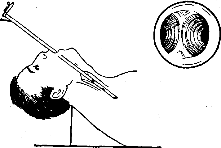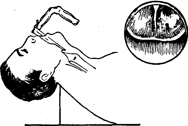 每一镜管必须备有两份灯心。以防检查时发生故障。电源及电线亦应准备两套。各种钳子和吸引器管应尽量备齐,尤其吸取分泌物的吸引管应多备数支。检查儿童或有呼吸困难患者应备有直接喉镜。 麻醉: 有局部麻醉和全身麻醉两种,但以局部麻醉为主。10岁以内儿童一般不宜用局部麻醉,以防中毒。 局部麻醉: 目前应用较广泛的麻醉剂有可卡因、丁卡因、赛罗卡因三种。以0.5~1%丁卡因效果较好。一般成人丁卡因总量不应超过0.05g,可卡因不超过0.2g,赛罗卡因不应超过200~400mg。对女性及瘦弱者应适量减少麻醉剂总量。麻醉方法有气管内滴入法、经环甲膜注入法、氧气喷雾吸入法、喉上神经注射麻醉法等,唯第一种最常用,且方便。具体操作为:以喷雾器将1%丁卡因喷入咽部,并逐渐向喉咽部喷入,共2~3次,最后用喉注射器在间接喉镜观察下把会厌软骨钩起,在病人深吸气时将药注入声门,患者即有咳嗽,隔1~2分钟再重复一次。注入总量为0.5%丁卡因2ml。 全身麻醉: 一般为静脉给药法,喉咽部再加用1 %丁卡因表面麻醉。 操作: 患者取仰卧垂头体位,床头与肩齐,枕骨结节离床面约10~15cm。助手坐在患者右侧,以张开的右手托起患者后上颈部,使颈尽量向前; 以左手放在患者头顶部托起头,使头尽量向后下转。 支气管镜送入法: 有经直接喉镜内送入法和支气管镜直接送入法。对已气管切开的患者可以经切开创口送入支气管镜。 ❶经直接喉镜内送入法。先用左手持直接喉镜,挑起会厌软骨,看清声门,然后将支气管镜经直接喉镜内送入气管,再把直接喉镜取下。此法因直接喉镜较宽大,使患者有一定痛苦,但优点是在直接喉镜下可以清楚地检查喉部,并因很快暴露声门而能正确地送入支气管镜,对有呼吸困难的患者可以即刻改善,如喉部有异物也可及时取出。对儿童患者因支气管镜内不易看清声门,必须采用此法。 ❷气管镜直接送入法。握住支气管镜在右手中指和食指中间,镜柄在拇指和食指中间;另一法为右手取握笔式握住管的后端,支气管镜由口腔正中或稍偏右进入,先看到会厌软骨,挑起软骨,然后看清左侧声带,将镜渐渐送入气管。管尖端通过声带时,在管内只能看到左侧声带。管口斜面向左,管柄向右,如此进入气管,不易损伤声带。支气管镜在气管内应保持正中位,见到前后左右各壁,若只看到一壁,则观察容易产生错误。到气管下端,看清隆凸,并应认清其角度,有无肿胀和溃疡等。先查健侧,后查患侧。支气管镜进入右侧支气管时,病人头稍左偏,管柄向右,以免伤及气管壁。
