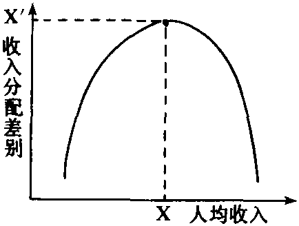 | 释义 | 收入分配的倒U型曲线Inverted-U Curve of Income Distribution描述经济增长与收入分配之间关系的函数曲线。美国经济学家西蒙·库兹涅茨在大量统计分析的基础上于1953年提出。他认为,在一国经济发展初期,社会各阶层之间的收入分配差别会随着经济的增长而扩大;当经济发展达到一定水平后,这种差别又会逐步缩小。如图所示,这种现象正如倒转的英文U字形状,故名“倒U型曲线”。库兹涅茨在分析增长和收入分配相互关系时指出,当经济最初开始增长时,资本所发挥的作用较大,因而收入分配有利于资产所有者,导致人均收入虽然提高,但收入分配差别扩大。当人均收入达到中等水平(图中X点)时,收入分配的差别达到最大化(图中X′点)。此后,随着劳动力质量和劳动力相对价格的提高,各部门之间生产率差别缩小,劳动收入在国民收入中所占比重趋于上升,收入分配差距随之缩小。