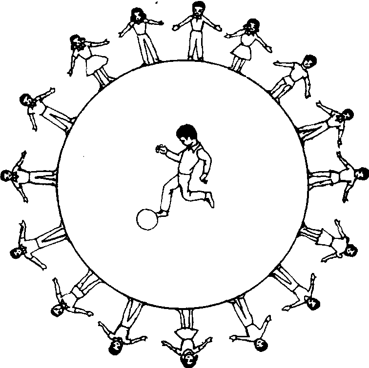 适用于5—6年级。可以巩固踢球技术,发展灵敏性。器材 小足球1个。场地 在足球场或平坦空地上画一个直径为4—5米的圆圈。球放在圆心。游戏方法 全体学生面向圆心均匀站立,指定1人站在圆圈内。游戏开始后,圆内的人用脚踢球,设法把