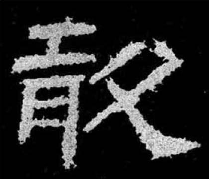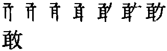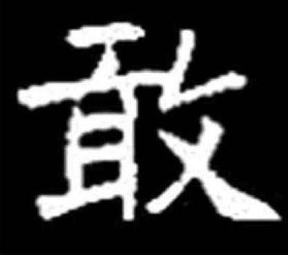 ❹ 强毅果敢 敢gǎn (金) 金文为形声字,“争”形,“甘”声。篆、隶发生了变化,声、形已难识辨。小篆由爪、古、攵合成(《九经字样》),意为双手去抓“古”,“古”是一种野兽的变形。徒手生擒猛兽是勇敢的表现。可属会意字。作声符生成的字有: gǎn 橄(橄榄) kàn 瞰(鸟瞰图) han 阴平:憨(憨厚) 上声:阚(同“㘎”,虎吼叫) 去声:撖(姓氏)
