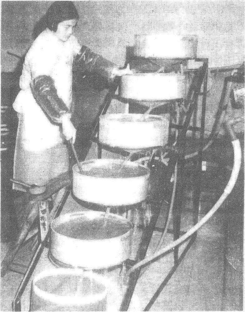 图6 散卵自动称量装盒 平附种改成散卵:将平附种用盐酸浸渍脱粒,已有消毒作用。浸酸标准是盐酸稀释液比重1.075,液温46℃,浸渍6分钟。脱酸水温须经28℃→20℃→15℃的中间水温各5~10分钟,然后投入10℃清水中脱净酸味,进行盐水比重选卵。倘脱酸直接放入10℃~15℃水中,将使蚕卵骤感变温而产生白死卵,且使卵胶凝结增加胶着卵,影响比重的准确性。 散卵蚕种loose silkworm eggs产卵在上浆夏布或蚕连纸上,经浴种消毒或浸酸洗落蚕卵,定量装盒而成的蚕种。装在木纱制或塑制的散卵盒内,是目前普遍采用的普通蚕种制种型式。每张夏布或蚕连纸上投放一定数量(因品种,生产季节等而异)的母蛾产卵。散卵蚕种洗落后可经过盐水比重选卵,淘汰不良卵,提高蚕种品质;定量装盒,使蚕种卵量规格化。制种管理方便、省工。但蚕卵洗落、消毒、比重等蚕种浴消工序较平附种多。 |