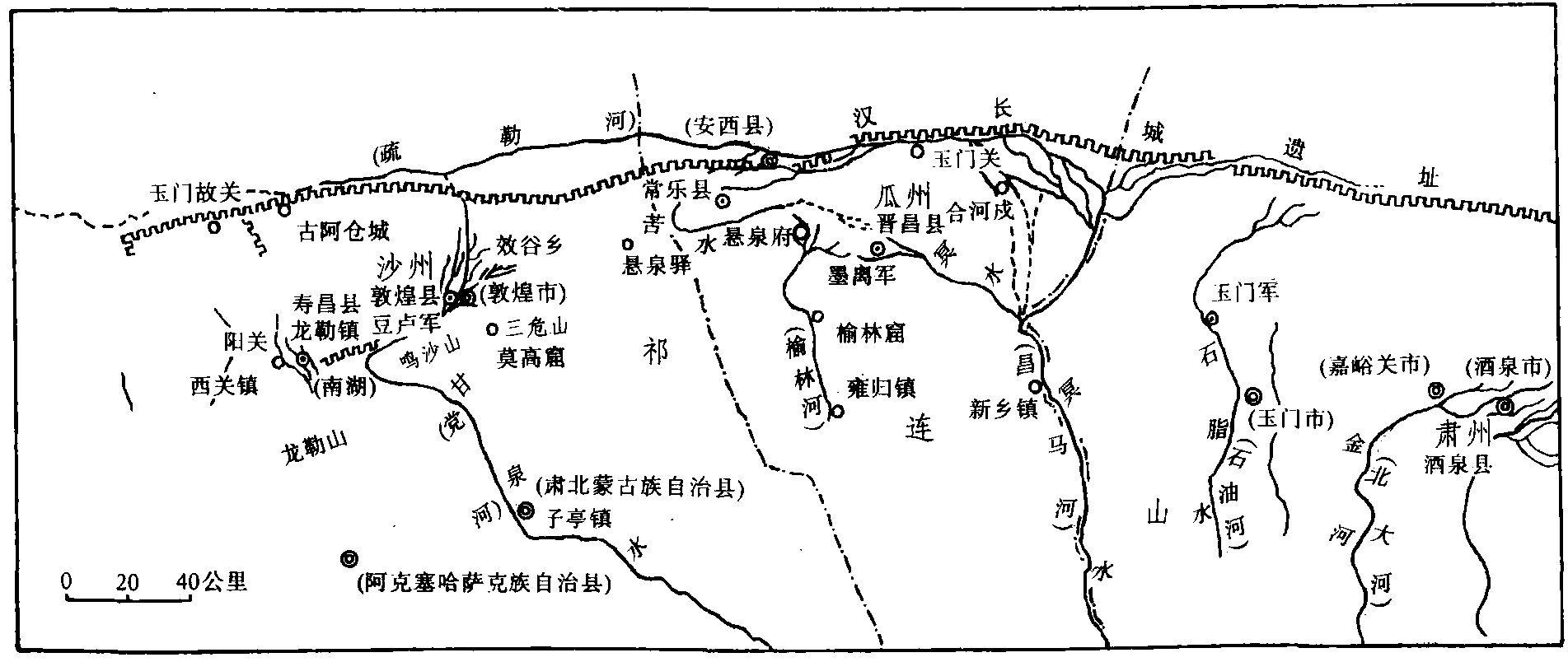 西汉敦煌郡示意图