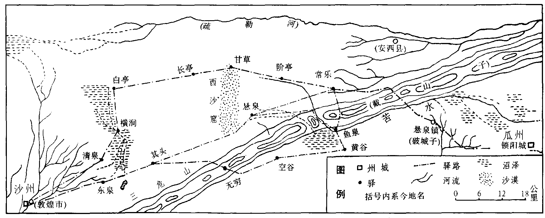 唐代前期沙州西部示意图 李并成绘