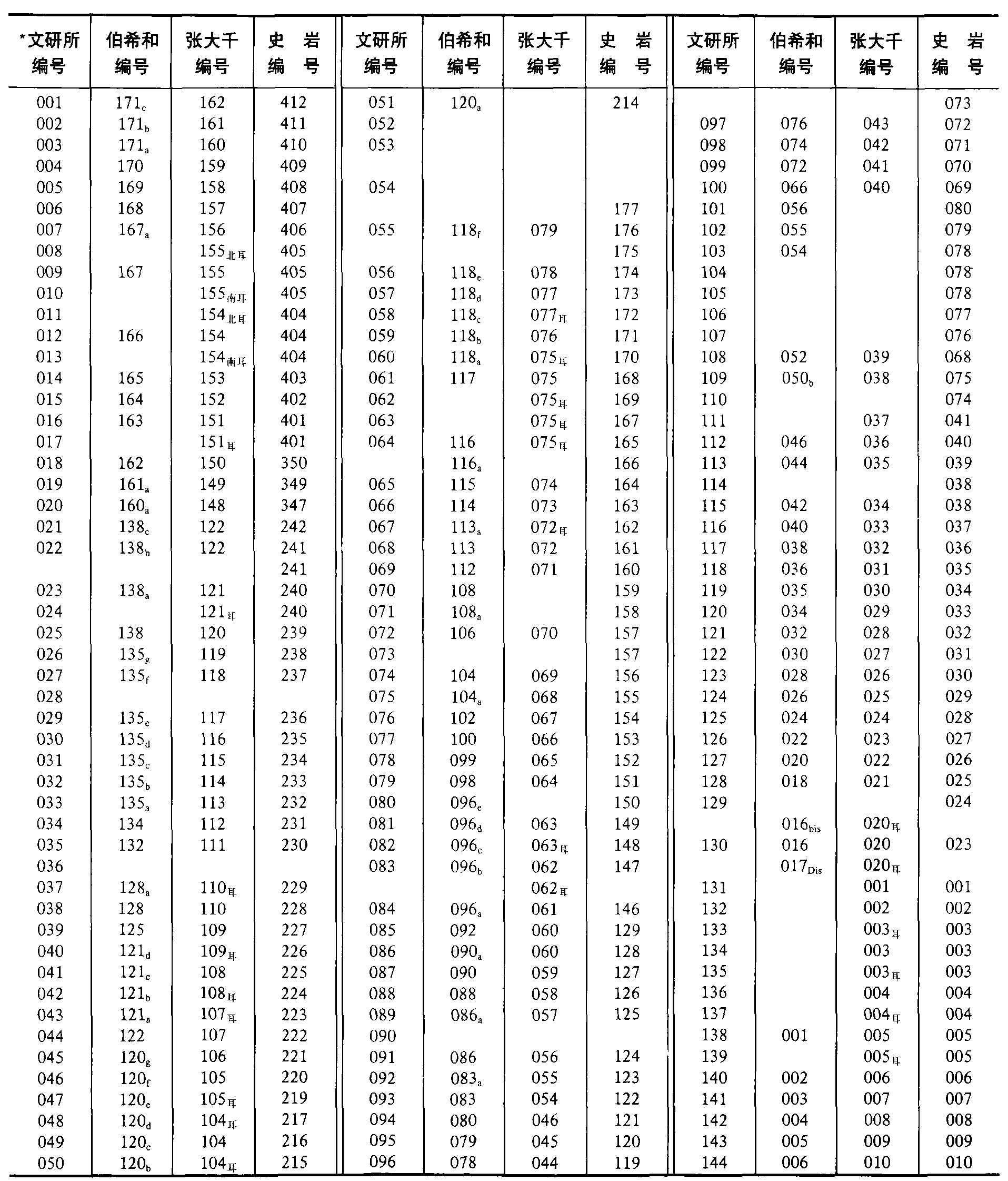 莫高窟石窟编号对照表