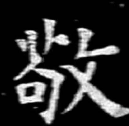 ❹ 毕恭毕敬|肃然起敬|凛然起敬 敬敬,金文作       ,小篆作 。 初文作 “茍”而無 “口”,“口”是裝飾符號或分化符號。構形意義不明。基本義是嚴肅、謹慎,引申爲恭敬義,“敬” 的初文。或增意符 “攴”,當讀如 “警”。銘文或用上述諸義。提示: 初文“茍”今音jì, 與从草頭之“苟”音義不相涉, 後世訛變混一, 故文字形體之變或有理,或無理,唯研究者當尋繹源流,明演進之道,知變易之由,探求演變軌迹及其規律,對識字、明義、正字、語言規範必大有裨益。 楚簡帛文作 ,沿襲古體。秦簡牘文作 ,古隸典型。 敬jìng会意字。篆书左边“苟”(读jí,与“苟且”的“苟”有别),《说文》说是“急”的意思。《正字通》说:“从羊、从包(省)、从口,犹慎言也。”隶书省作“苟”。苟,随便,不严肃。攴(pū),以手执杖或执鞭,表示敲打,使之严肃、慎重,亦属会意。《释名·释言语》:“敬,警也,恒自肃警也。”作声符生成的字有: jǐng 警(警察) qíng 擎(引擎) 檠(灯,灯台。“梦断酒醒山雨绝,笑看饥鼠上灯檠。”——苏轼《侄安节远来夜坐》) 敬 金文; 金文; 篆jìng[茍(意符)+攵(攴,示動符)→敬(《説文》:“敬,肅也。從攴茍。”敬,早期金文以“苟”爲“敬”。後加“攴pū,示動符”表示全神貫注,引申爲尊敬。以禮物致敬意〈賀敬〉。肅然〈起敬〉。)] 《詩經·小雅·沔水》:“我友敬矣,讒言其興。”(朋友朋友你要謹慎,讒言四起不可不問。) 《論語·季氏》:“事思敬,疑思問。”(〈孔子説〉:事情要想到全力去做;有疑惑,要想到去問人。) 梁斌《紅旗譜·五二》:“嚴知孝坐在沙發上,僕人敬上茶來。” 敬 jìng(12画)
