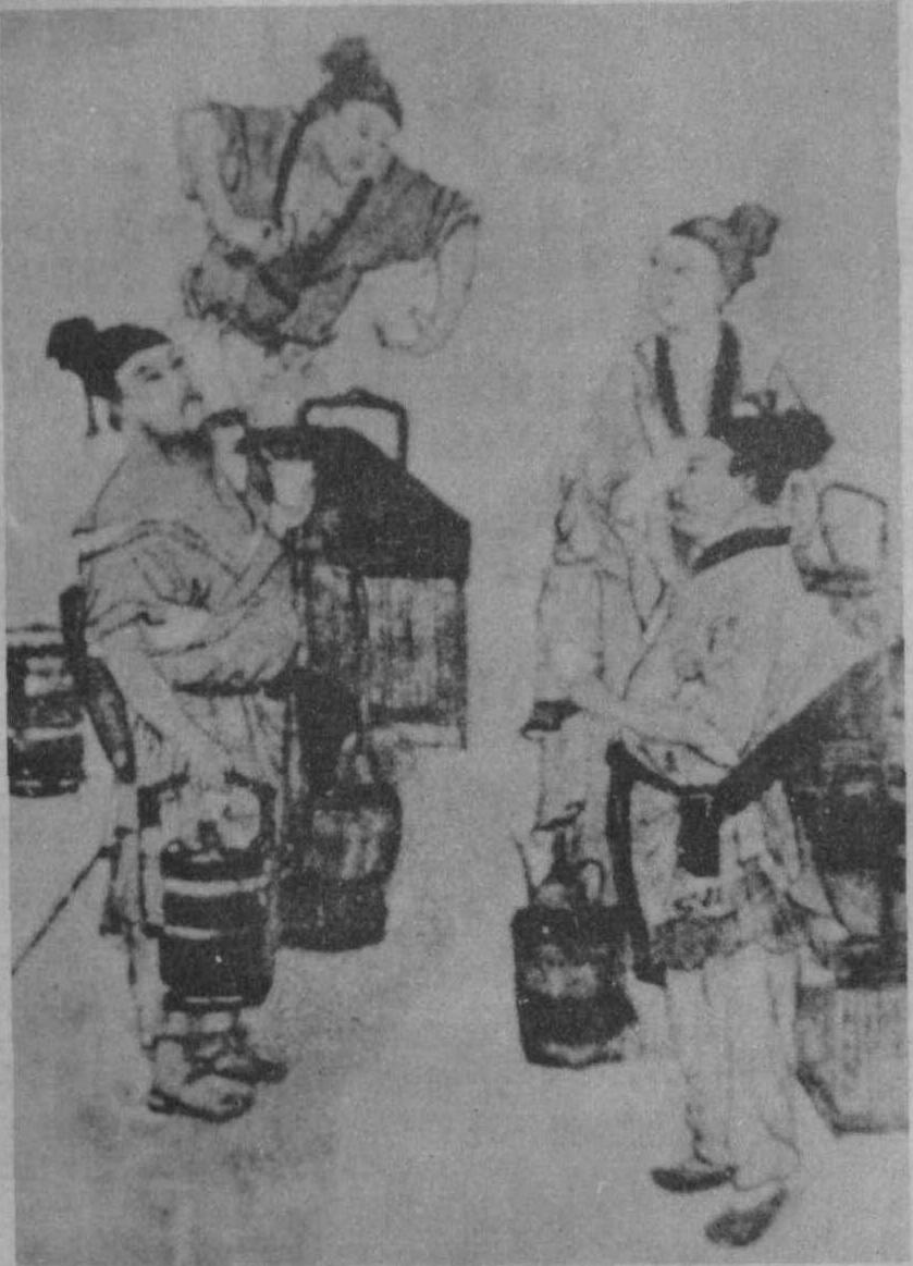 斗茶图 宋代斗茶以饼茶为主, 有一定评比要求。品评前先将饼茶碾末, 用少量沸水调粘, 再注入沸水搅匀,然后在特制的茶碗中鉴色辨味。蔡襄《茶录》中对斗茶的评比有详细记述, 除了评比色、香、味外, 还要评比茶汤着盏的水痕, 以无水痕者为绝佳。斗试时以先有水痕者为负, 耐久者为胜。所以在评比胜负时称作相去一水或两水。斗茶对制茶工艺的精益求精, 有促进作用。 斗茶tea game中国古代评比茶叶的一种娱乐。冯贽《记事珠》说:“建人谓斗茶为茗战”;斗茶在唐代最初兴于建州一带,北宋以后风行全国。范仲淹《和章岷从事斗茶歌》中有“黄金碾畔绿尘飞,碧玉瓯中翠涛起;斗茶味兮轻醍醐,斗茶香兮薄兰芷”之句,反映当时斗茶主要是评比茶的色香味;后来有的地方演化为比茶沫的形纹和水痕的消失,成为纯娱乐性的比试。 斗茶又作“斗茗”。烹茶互品,以比赛茶的好坏。江休复《江邻几杂志》:“苏木翁尝与蔡君谟斗茶。蔡茶精,用惠山泉;苏茶劣,改用竹沥水煎,遂能取胜。” |