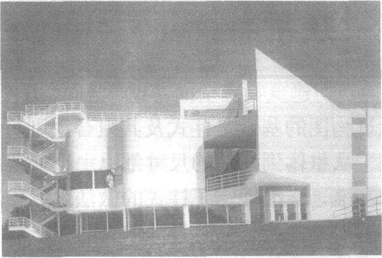位于美国印第安那州新哈莫尼,是19世纪空想社会主义者建立的 一个乌托邦式城镇,为接待游人参观,于1978年建成游客中心,建于城镇的河滨,建筑通身纯白,隐喻其为停泊在岸边的 “知识之船”。设计人是美国著名建筑师迈耶,是在美国曾流行一时的 “白色派”建筑的代表作品。
