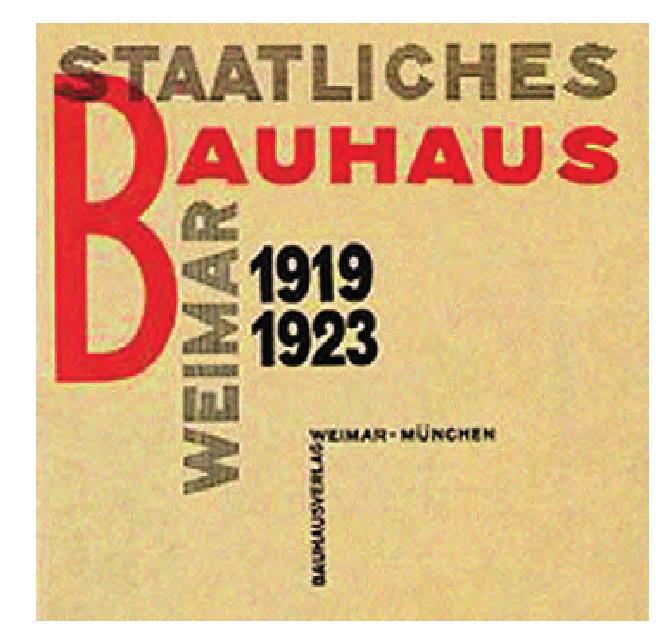 莫霍利-纳吉设计的包豪斯简介封面 1919年,德国建筑师瓦尔特 · 格罗皮乌斯(Walter Gropius)在魏玛创立了国立包豪斯学校。在学校创立的初期,新字体风格还没有处于中心地位。直到1923年匈牙利设计师拉斯洛·莫霍利-纳吉(László Moholy-Nagy)被任命为该学校的校长并把新字体风格的理念引入包豪斯以后,这一状况才得到根本性的改变。纳吉在新字体风格的问题上做出了明确表示,他认为,文字首先应该是交流的工具。1933年,包豪斯在纳粹的压力下被迫解散。 包豪斯的文字设计是以构成主义和功能主义这两个基本原则为基础的。在这里,所有那些用阴影线、菱形框以及弧线等附加元素来充实基本构架的字体都被摒弃不要,其原因就在于它们否定了对于数学的准确性和最佳辨认性的追求。相应地,只有那些几何的、无时限和无风格的无衬线字体,才能以其精确的视觉效果满足上述要求,因此,新的字体设计解决方法也是从这里开始的。 赫伯特·拜尔(Herbert Bayer)在此基础上创造了一种用圆规和直尺设计的标准字体,这种字体的大写字母和小写字母没有任何差别。从美学上来说,由于这种字体无法用正方形、圆形以及三角形来定型,因此它只能保留在尝试阶段。虽然从这一方面看没有对字体的创造产生直接动力,但这种工艺确定了新字体风格中新的设计准则。