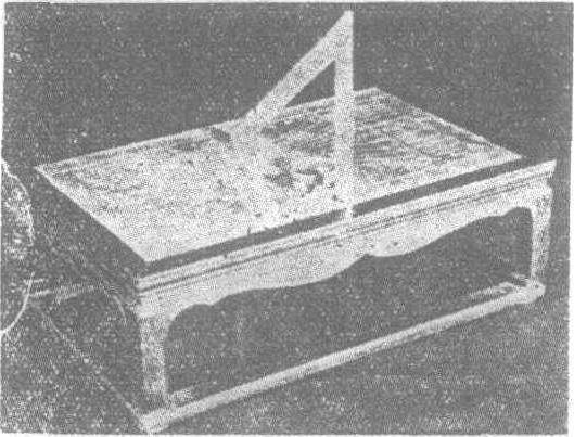 清。指时盘长20.8厘米,宽12.2厘米,三角形晷针高9.2厘米,指南针盘直径2.5厘米。北京故宫博物院藏。地平式日晷(见“赤道式日晷”)。此日晷铜制,指时盘为长方形,刻有时刻线,上注有“子初”、“子正”、“丑初”、“丑正”……“卯初”、“卯正”……“亥初”、“亥正”,还刻有“夏至”……“春分”……“冬至”的节气线和观测太阳高度的角度线。指时盘背面刻“顺治元年七月吉日恭进”、“修正历法远臣”、“臣汤若望制”。晷针呈中空的直角三角形,斜边作晷针,垂边内放置有指南针。“汤若望”(1591—1666年),德国人,1622年以耶稣传教士身分来中国,在明、清两朝担任过修历和制造天文仪器的工作,清顺治二年(1645年)任钦天监监正,著有《浑天仪说》、《西洋测日历》以及与徐光启等合撰的《西洋历法新书》。这件新法地平式日晷是刻有年代的便携地平式日晷中最早的日晷。
