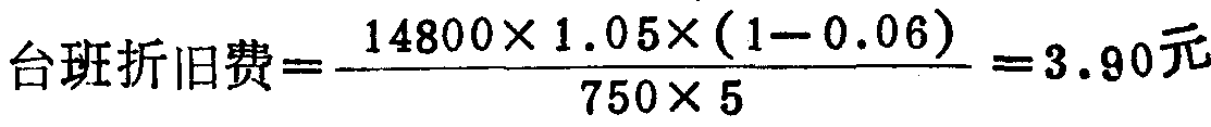 例如解放牌4吨载重汽车的出厂价格若为14.800元,手续费为5%,大修间隔台班为750台班,使用周期为5次,残值率为6%,则: