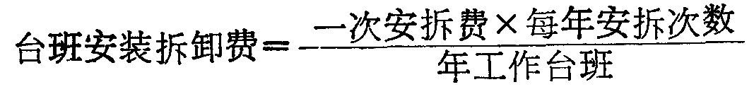 指施工机械自供应点至施工现场的安装和拆卸所用人工、材料、机具、试运转费及机械基础、底座、固定锚桩行走轨道(折旧)等辅助设施分摊费用。其计算公式为: