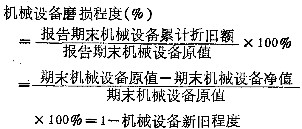 是建筑施工机械新旧程度指标的对称。反映设备磨损的程度。是报告期末机械设备累计折旧价值与机械设备原值之比。计算公式为:
