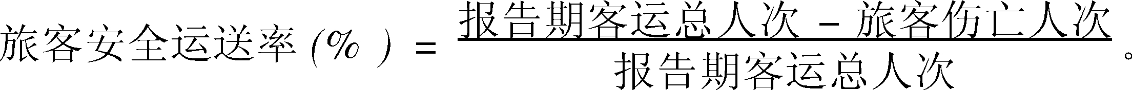 | 释义 | 旅客安全运送率 旅客安全运送率rate of passenger safe transportation报告期内安全运送的旅客人次数与同期客运总人次数之比。反映汽车运输企业或汽车客运站客运组织工作质量的指标之一。计算公式为: