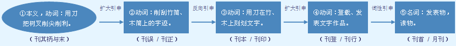 字源解说 干,既是声旁也是形旁,表示利用尖利树叉作成的简单武器。刊,篆文 = (干,尖利树杈)+ (刀,削刮),表示削刮树杈干具,使之尖利。造字本义:用刀把树叉削尖削利。隶书 将篆文的“干” 写成 。 附 文言版《説文解字》:刊,剟也。从刀干聲。 附 白话版《说文解字》:刊,削,刮。字形采用“刀”作边旁,“干”作声旁。 引申线索