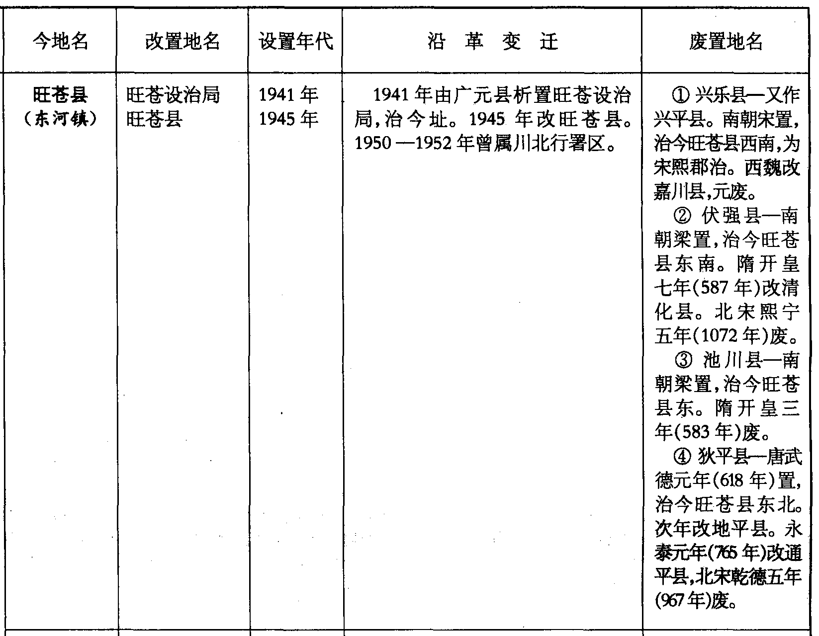 ❹狄平县—唐武德元年(618年)置,治今旺苍县东北。次年改地平县。永泰元年(765年)改通平县,北宋乾德五年(967年)废。
