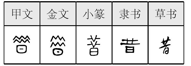 【提示】日中间的横,宋体与左右两边相接,楷体与左边相接,与右边相离。 *昔xī8画 日部 从前: ~日|往~|今非~比。 昔 ☚ 晞 暱 ☛ 昔xī甲骨文象日下有洪水流动。对从前洪水的印象,即为昔。也有水上日下的。金文以后继承。战国文字和小篆演变为曲折处出头,左边像楷书两入字、右像两人字。《说文》说昔字上象晒的肉干,不对。又有籀文作腊,更误。隶楷渐变成昔,上为,更不象水(甲骨文水字作偏旁时或作 ,似小篆的川字。 但偏旁时竖立起,与马、犬、象、虎竖立同意,即为省两边的地位,特别有三行(háng)文字时,它在中间,更需让出两旁位置)。昔指从前。如:昔者|昔日|今昔对比。 昔★常◎常