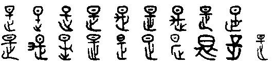❹ 百无一是|比比皆是|不宁唯是|触目皆是|独行其是|俯拾即是|各行其是|共商国是|积非成是|举目皆是|累累皆是|莫衷一是|实事求是|习非成是|自行其是|自以为是|昨非今是 是shì,tí郭沫若说是形声字,甲骨文的上部为手持汤匙,表意;下部为“止”,表声。许慎说是会意字,“日,正,直也。”“日正为是;目正为直。”正、直,都是不偏不斜的意思。周朝中期的金文“日”下有一“丨”,表示立竿之形。日正则竿直。作为意符生成的字如“韪”。“是”,又读ti,《集韵》:“田黎切”,“月边也”,“鲁人语也”。作为声符,生成的形声字有: shi 匙(钥匙;另读chí) tí 提(提高) 题(题目) 醍(醍醐灌顶) 缇(《说文》:“缇,帛丹黄色。”) 、鳀、𫙬 di 阴平:堤(河堤) 提(提防) 去声:踶(踢,踏) 是(shì)“ ,直也。从日、正。凡是之属皆从是。 ,籀文是,从古文正。”(承旨切) 段玉裁注:“十目烛隐则曰直,以日为正则曰是,从日、正,会意。天下之物,莫正于日也。” 金文“是”字或作 ,从日,中一竖象竖立之木,一象日影,下从止,表示所止之处。构意应是古人竖立木棍取日影测时。[1]战国包山楚简或作 ,信阳楚简作 ,变为从日正,应是《说文》小篆所本。宋育仁《部首笺正》:“日正者,日方中也。日方中者,正当其时。古文时、是为一字,过时则昃,舍时则非,义取诸此,皆仰观象于天。”[2]邹晓丽《基础汉字形义释源》据金文认为“是”的构意是太阳冲破黑暗而出,即“破晓”,有光明的意思,本义是“正确”。[3]刘钊则认为,“是”字最初可能是从日、止声。[4] 是部只有两个属字“韪、尟”。“韪”字下云:“是也。从是,韦声。《春秋传》曰:‘犯五不韪。’”见《左传·隐公十一年》。“尟”字下云:“是少也。”其中“是”训“正”,强调少的程度,古书多借用“鲜”字。今天的辞书一般不立“是”部。 是昰shì(9画)