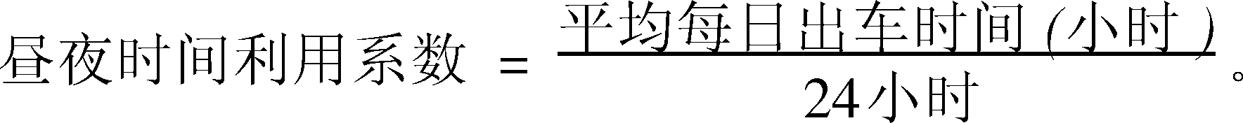 汽车运输企业计算期内工作车辆平均每日出车时间与昼夜时间之比。工作车日昼夜时间包括纯运行时间、停歇时间、昼夜内驾驶员休息用餐时间等。一个工作车日昼夜时间按24小时计算。昼夜时间利用系数越高,表示车辆的时间利用越充分。实行多班制或双班制工作制度,是提高昼夜时间利用系数的有效措施。其计算公式为: