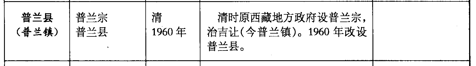 普兰县(普兰镇)普兰宗普兰县清1960年清时原西藏地方政府设普兰宗,治吉让(今普兰镇)。1960年改设普兰县。
