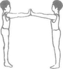 场地 室内外空地进行。 游戏方法 将学生分成若干组, 每组两人。预备时两人间隔1米, 对面站立。两人双手掌相对。教师发出开始口令后, 两人可用虚虚实实、借劲使劲的方法互相推击对方, 以使对方双脚或单脚移动为得1分。游戏采用5局3胜的方法, 最后以得分多为胜。 游戏规则 ❶只能相互手推手, 不能推对方身体的其它部位。 ❷双方同时移动脚步, 互不得分。 ☚ 兔跳 互拉互推 ☛ |