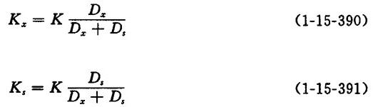 式中 Kx、Ks——下辊及上辊的中高度(m) Dx、Ds——下辊及上辊的直径(m) K——总中高度(m),见式1-15-393和式1-15-395
