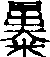 曝 金文;《説文》所無bào,pù[日(太陽,意符)+暴(曝本字,聲意符)→曝(“暴”被借用爲“殘暴”,後加“日”另造一“曝”字。因曝在“光天化日之下。”曝:1.bào於是引申爲曝露〈曝醜,曝光〉;2.pù曝曬。)] [北魏] 賈思勰《齊民要術·種棗》:“切棗曝之,乾如脯也。” *曝bào19画 日部 同“曝(pù)”,用于“曝光”一词。 另见pù(317页)。
