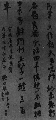 【简介】: 淸·杨守敬书于宣统二年(1910)。时年七十三岁。纸本。行书。凡五行,共六十四字。136.9×63.5cm。刊于日本《书道全集》(二十四)。 【赏析】: 这是杨守敬临写倪元璐的五言诗轴。鸿宝之书,“新理异态”、“灵秀神妙”,尤其是在结字上有超乎常人的本领。杨守敬临其书,意在寻觅鸿宝“新”、“异”之处,吸取其灵妙之神。这幅作品,行距拉大,字距靠近,这样可以充分发挥运笔时的贯性,使之上下贯通,一气到底。用笔上加大了腕力,使线条凝重紥实,字裏行间似有《祭侄稿》的意蕴。如“只作”、“天”、“仑”、“何”等字。观杨守敬所临倪元璐书,乍看不似,但仔细把玩,又觉得鸿宝精神俱在,超逸神奇之气自在行间。  他爲后人作出了临书的榜样,那就攻其一点,不及其余。帖爲我用,而不爲帖奴。齐白石有句名言叫:“贵在似与不似之间。”杨守敬学鸿宝书,看似不似实又似,如其妙哉。 |