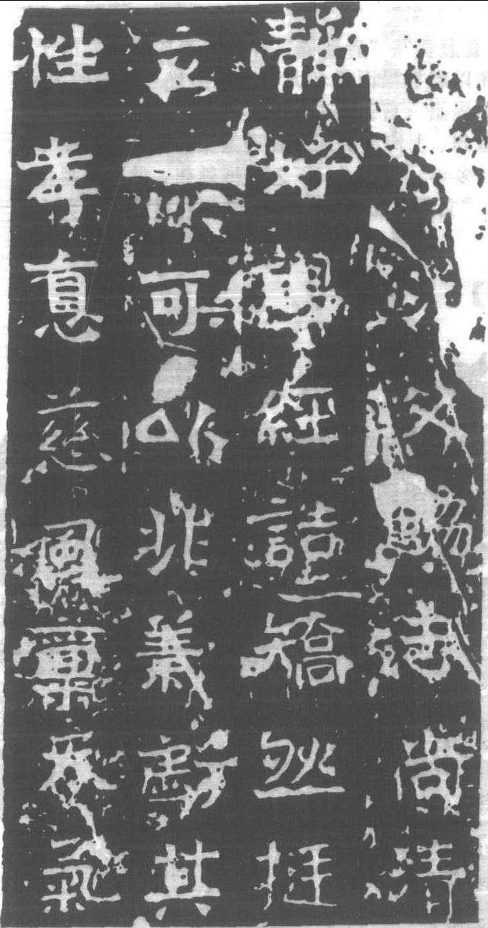 曹恪碑(局部) 又名(譙郡太守曹 樂碑>。北周 · 天和五年( 570 )刻。撰、書者未詳。楷書二十六行,行五十一字。書法頗含隸意,古拙勁健,雅趣横生,惟略欠協調而已。清楊守敬評云:“用筆如斬釘截鐵,結體尤古,此命世之英也。”碑已漫漶甚,在山西安邑縣北石碑莊。 |
