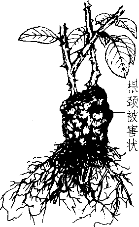 月季根癌病rose crown gall又称冠瘿病。月季根颈部的一种细菌病害。病原菌是原核生物界的根癌土壤杆菌〔Agrobacterium tumefa-ciens(E.F.Smith et Townsend)Conn〕。危害月季、桃、樱花等多种花木。病株多在近地面根颈部或砧木与接穗结合处产生木质节结状肿瘤,也生于根和茎秆上。受害植株生长不良,严重时整株死亡。病瘤组织腐烂脱落后,细菌在土壤中扩散传播,由伤口侵入。嫁接伤口、机械伤口及虫伤是病菌侵入的主要途径。碱性潮湿的土壤有利于病菌的侵染发病,在温度22℃左右最适于癌肿的形成。宜选用无病地作苗圃、改进嫁接方式、避免在根颈部和根部造成伤口、防治地下害虫、改变土壤理化性质以及采用生物防治等措施。