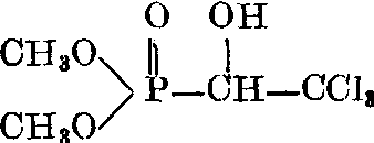 图2 马拉硫磷 敌百虫 高效低毒,谱广,具有触杀和胃毒等内吸作用,进入虫体后可转化成毒性更大的敌敌畏,是目前有机磷农药中用量较大的品种之一。化学名O,O-二甲基-(2,2,2-三氯-1羟基乙基)磷酸酯,分子式(CH3O)2P(O)C(OH)HCCl3,结构式见图3,分子量257.454。纯品为白色结晶,易溶于水,其溶解度随温度升高而增加。可溶于石油醚、四氯化碳。室温下稳定,碱性条件下可不溶于水,毒性增大,并可进一步水解,对金属有腐蚀性。急性毒性属低毒类,经口LD50(mg/kg体重):小鼠雄性605~660,大鼠雌性640,雄性354,狗420。它是一种不需经肝酶系统激活的快速不可逆胆碱酯酶抑制剂。世界卫生组织规定ADI为0.01。各类食品中允许残留限量(mg/kg):辣椒1,香蕉肉、甘蓝、甜玉米、芹菜、小麦0.2,大麦、大豆、卷心菜、豆类、花生仁、畜肉0.1,全脂奶粉0.05。