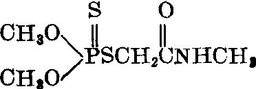 图4 敌敌畏 乐果 高效、内吸,触杀作用强,化学名O,O-二甲基--S-(N-甲基氨基甲酰甲基)二硫化磷酸酯,分子式(CH3O)2P(S) SCH2C(O) NHCH3。结构式见图5,分子量299.26。纯品为白色针状结晶,带有硫醇味。工业品为白色结晶或黄棕色油状物。室温时水中溶解度25%,易溶于醇类、酮类、醚类、苯类等有机溶剂,在酸性和中性溶液中分解缓慢,对日光及热稳定,在碱性溶液中分解迅速,易被氧化,吸潮后易分解。乐果在体内水解迅速,大部分经肝内酰胺酶激活,水解为水溶性无毒代谢物——乐果酸排出体外。急性毒性为中等毒性,经口LD5O(mg/kg体重):豚鼠350~400;大鼠雄性215(155~300),雌性245(180~325)。对人无明显作用剂量为每日 0.2mg/kg。世界卫生组织规定ADI为0.02。各类食品中的允许残留限量(mg/kg):水果、蔬菜2,蕃茄、辣椒1。