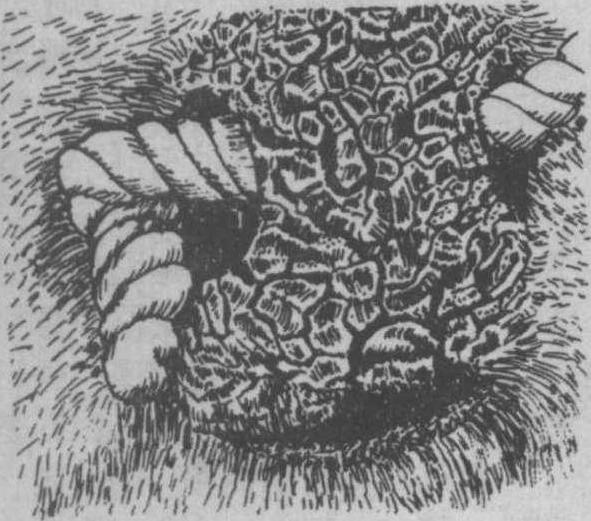 图2 牛鼻镜龟裂 正常与有病口色 各种家畜正常口色一般是舌质淡红, 微有薄白苔, 干湿得中, 不胖不瘦,活动灵活,可因四季气候的不同而有一些小的变化。如夏季炎热,气血旺盛, 口色偏红; 冬季寒冷, 气血循行较缓, 口色也就偏淡一些。另外, 家畜种类和年龄不同, 口色也有一定的差异。如猪的口色比马、牛红一些,牛、羊的口色比马骡淡一些, 幼畜的口色偏红, 老龄家畜的口色偏淡。病理口色分: 青、红、黄、白、黑色。青色主寒、主痛、主风。青白属寒证, 见于胃寒、肺寒、脾寒、冷痛、外感风寒等。青黄为内寒夹湿, 如寒湿困脾、冷肠泻等。青紫滑润为寒极, 青紫而干属气滞血瘀。红色主热。鲜红为热在气分, 绛(深红)为热入营分, 赤紫为热入血分; 舌尖红是心火亢盛; 舌边红是肝胆有热; 舌红而干是热盛伤津; 舌红干无苔是阴虚火旺。黄色主湿。黄色鲜明如橘为阳黄, 属肝脾湿热; 淡黄晦暗为阴黄, 为肝脾寒湿。白色主虚。淡白为血虚, 见于贫血、营养不良; 苍白为极度血虚, 见于大失血、严重虫积; 白如枯骨多为死色 (临证较为少见)。黑色亦很少见,一般是指青紫而晦暗,表示血已败伤。唇和排齿湿润为津液未伤,干燥为热伤津液。属病理口色, 但有光泽是正气尚存。晦暗枯槁表示气滞血瘀, 预后不良。 舌苔 中兽医古籍中有关苔诊的记载很少, 当代有关苔诊的论述已有所增多。苔诊是舌诊的重要组成部分, 可借以辨别疾病的表里、寒热、虚实以及病邪深浅和胃气有无, 进而推知病情的轻重、进退和转归。苔诊时应注意苔的有无、颜色、厚薄、润燥、腐腻等。健康家畜应无苔或微有薄白苔, 干湿适中。病理情况下, 苔的有无表示胃气的盛衰: 苔迅速增厚, 表示病邪势盛; 苔迅速退尽, 舌面光亮而干, 病理舌色依然可见, 病情有增无减, 表示病转重危; 苔满舌面为病重, 苔少是病轻。苔色变化反映病邪的进退: 苔由白转黄或转灰转黑色, 表示病邪渐盛。反之, 表示病邪渐退; 苔的厚薄表示病邪深浅: 苔由薄变厚,由疏松变致密, 表示病邪深入, 病情加重; 反之, 表示病邪渐退。苔的润燥表示津液的盈亏:苔润是津液未伤;过润是寒湿内聚; 苔燥是津液已伤; 苔由润变燥是表邪化热入里; 反之, 是邪热消退。苔的腐腻表示湿浊的轻重:苔腐(苔疏松而厚, 易剥离),表示阳气有余, 属热证和实证; 苔腻(苔细腻致密、擦之不去), 表示阳不胜阴, 湿浊内蕴; 苔由腐转腻为病进; 反之, 为病退。苔气味臭为病邪深重; 苔气味淡为病轻。 马的病苔主要有4种。❶白苔: 主表、主寒。多见于肺经病。薄白如瓦上霜者多为表寒,病在卫分。白厚而滑为内有寒湿; 白厚而腻为胃肠积滞; 薄白而干为外邪开始化热伤津;白厚而干为湿邪初化热入里,而湿浊不化。 ❷黄苔:主热。多见于脾胃经病。病在气分。淡黄薄润为里热初起或外感风热;苔由白转黄为风寒化热,邪由卫分转入气分;薄黄而干为里热初伤津液;黄厚而干为里热炽盛;苔黄厚腻为脾胃或肝胆湿热;苔黄褐焦裂为热极。 ❸灰苔:是湿或热发展到病情较重的表现,多由黄苔转化而来,也可见于苔由黄转黑的过渡阶段。苔黄燥带灰为里热夹湿:苔灰干,舌绛,多为燥热内蕴。 ❹黑苔较少见,苔黑燥裂为热极,津液枯竭;苔黑润滑是阳虚而阴寒盛。均为病重之征。 望口色时应鉴别草料及药物等对舌质、舌苔的影响。 望舌形和舌动 望舌形应注意舌的大小、老嫩、长短、裂纹、光滑、糜烂等。舌肿胀多属实热证。舌赤肿糜烂,转动不灵, 见于热毒积于心经;舌肿硬,活动失灵,或偏向一侧,多为风症;舌肿喘息为热毒蕴结心肺;舌肿色青紫多为中毒;舌浮肿色青黄为气虚;浮肿色苍白为血虚。舌瘦小属虚证。瘦小淡白为血虚;瘦小绛嫩无苔为阴虚火旺;舌瘦小绛,苔黄为热盛伤阴。舌体纹理粗糙,坚敛苍老称为老舌,属实热证。纹理细腻、浮肿娇嫩称嫩舌,属虚证。嫩而淡白为血虚;嫩而青黄属气虚;嫩而瘦小,色红无苔属阴虚。舌有裂纹属热伤津液。光滑舌多因汗、下太过而致阴液枯竭。舌绛光滑为阴亏;淡白光滑为气阴两亏。舌肌有力为病轻;舌肌松弛为病重。 现代研究证明:随着舌色由淡红转红转绛转青紫,红细胞压积容量、黄疸指数、血红蛋白量和红细胞数逐渐增多而血沉渐慢;随着苔色由薄白转白腻转黄燥转灰黑,舌苔的渗出细胞逐渐增多;这种变化与感染发热关系密切;各种渗出细胞中以中性细胞和淋巴细胞的增多最明显。舌面电阻值是判断唾液分泌量的客观指标。舌苔在舌面的自然分布量是由舌根向舌尖逐渐变薄,其含水量相应减少,电阻值则依次增大。白腻苔含水较多电阻值较小,黄燥苔和灰黑苔含水少,电阻值明显增高。 望槽口 马槽口(下颌间隙)生硬结不易移动者,见于马鼻疽;槽口漫肿热痛先硬后软者,见于喉骨胀。 望咽喉 马咽喉肿痛,吞咽困难,喘粗咳嗽,见于颡黄或喉骨胀。 望饮食 包括观察采食、饮水、咀嚼、反刍、嗳气等动作。马吃草不吃料多为料伤;喜吃干草干料多为伤水;喜吃湿草湿料多为胃热;食欲时好时坏见于脾胃不和;烦渴贪水见于胃热或津亏;饮少或不饮,多为寒证;渴不欲饮为内有湿;以切齿采食者多为唇或颊部有病; 口鼻伸入水中饮水并咀嚼,或含草于口内而不咀嚼,多为脑病;咀嚼小心、吐草,见于口腔或牙齿疾病; 口紧难以采食见于破伤风;急食中突然停止采食,伸头缩项, 口鼻流涎, 见于草噎:边吃边吐草见于翻胃吐草。