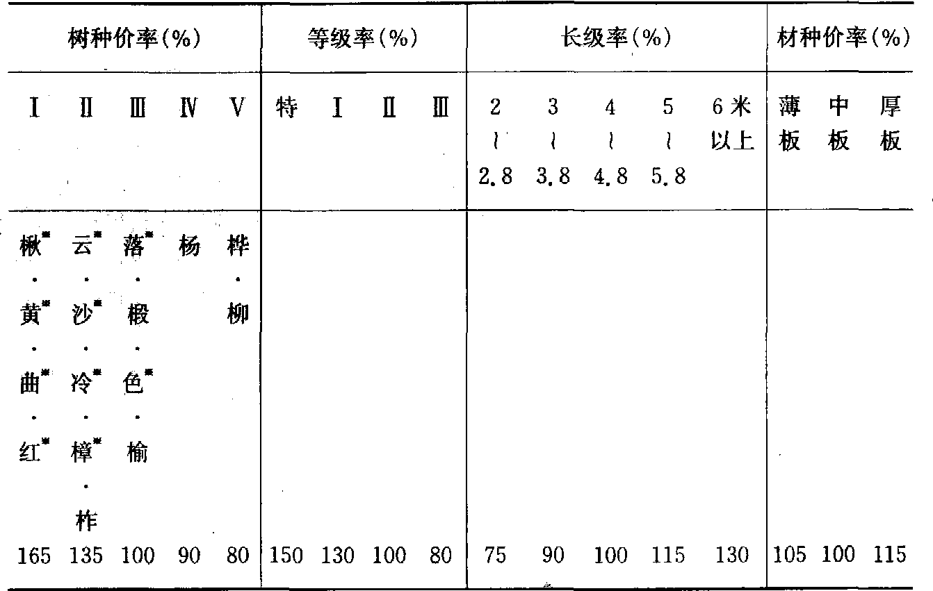 锯材出厂价格=基价(193元)×树种价率×等级率×材种价率。 分别为核桃楸、黄波罗、水曲柳、红松、云杉、沙松、冷杉、樟子松、落叶松、色木。 和环保设施同步进行。在工艺和设备选择上,尽可能采用少产生污染和无废物排放,以及能够综合利用废弃物的先进技术。对现有企业,要根据污染和危害程度,限期处理。 见木材工业。 |