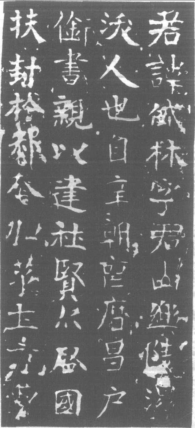 朱岱林墓志銘 (局部) 北 齊· 武平二年 (571)刻。小楷四十行,行三十四字。未注撰、書者名,但據文中語句,序文為朱岱林子敬修所撰,銘文為其侄敬範所撰。書法細瘦雄勁,可窺後世 “寫經體” 之萌芽,引人注目。楊守敬《平碑記》謂為“筆法既開<曹子建碑>之先路,然多草率。”明末于山東壽先縣出土,當時名尚不顯,自清·雍正三年(1725)王化洽訪得後,方鳴于世。繼移置壽先縣學。王氏訪得時,殆無剥落,近則損壞已甚。 |