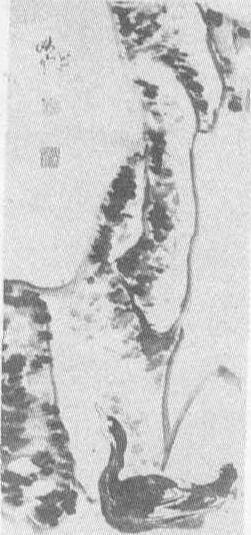 ☚ 四王、吴恽 石涛 ☛ 朱耷 朱耷1626—约1705Zhuda清初画家。谱名统𨨗,南昌人。明宁王朱权后裔。入清后隐其姓名,23岁时落发为僧,法名传綮,字刃庵,后又弃僧入道,在南昌建青云谱道院,有雪个、个山、人屋、驴屋、卧虎子、八大山人等别号。他一生经历坎坷,满怀悲愤之情,誓不与清王朝合作,性格倔强,行为怪僻,常藉诗文书画发泄内心积郁。擅画水墨花卉禽鸟,笔墨简括凝炼,鱼鸟造型夸张,表情奇特。画面构图险怪,笔法雄健泼辣,墨色淋漓酣畅,具有奇特新颖、出人意象的艺术特色。他的山水画多为水墨,宗法董其昌,画面枯索冷寂,满目凄凉,于荒寂境界中透出雄健简朴之气,反映了他孤愤的心境和坚毅的个性。他的署款八大山人,联缀似“哭之笑之”的字样,还有含意隐晦的题诗,都寄寓着亡国之痛。兼工书法,行楷学王献之,纯朴圆润,自成一格。其传世作品《鹌鹑游鱼图》是他的《花鸟册》的一页,在岸边的石块上,立着一只鹌鹑,卷缩着身躯抵御严寒,但依然昂首向天,白眼看人,一派冷峻高傲的神态。水中有两尾鱼,正在争逐食物。在它们的背后,三分之二以上的空间是一大片空白,整幅画笔法简洁精到,寥寥数笔,似极不经意,却把鹌鹑在特定的环境中的动态和神气表现得活灵活现。八大山人的传世作品还有《孔雀牡丹图》、《河上花图》、《鱼乐图》、《荷花水禽图》、《古梅图》等。