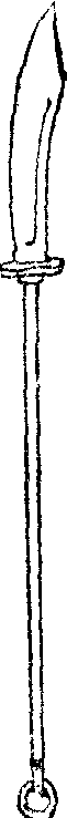 图34 朴刀 ☚ 壮族尖刀 陈式太极双刀 ☛ 刀剑等武器 刀剑等武器刃(兵刃) 金 刀头 锋钜锋锷 ☚ 剑 好剑 ☛ 朴刀古代兵器,一种刀身窄长,刀柄较短的刀。双手使用。《水浒传》第二回:“〔朱武等〕只带了三五个做伴,将了朴刀,各跨口腰刀,不骑鞍马,步行下山,径来到史家庄上。”茅盾《豹子头林冲》: “林冲挺起朴刀,托开左手,飞步抢过聚义厅前,便转向右首耳房奔去。” 朴刀po daoa sword with a long blade and a short hilt wielded with both hands |