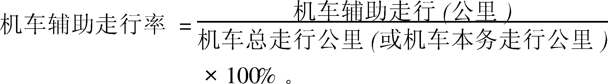 | 释义 | 机车辅助走行率 机车辅助走行率ratio of additional engine kilometers to actual engine kilometres机车辅助走行公里占机车总走行公里或本务机车走行公里的百分比。其计算公式为: