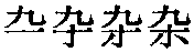 ☚ 精粹 杂 ☛ 杂雜zá徂合切,入合。 ❶配合协调。《文心雕龙·情采》:“五色~而成黼黻,五音比而成韶夏。” ❷混合夹杂。《楚辞·离骚》:“畦留夷与揭车兮,~杜衡与芳芷。” ❸纷乱;杂乱。谢朓《晚登三山还望京邑》:“喧鸟覆春洲,~英满芳甸。” ❹都,共。《国语·越语》:“是以不成,~受其刑。” 杂zá❶多种多样。如:杂货,杂粮,杂音,杂技。 ❷搀和,混合。如:夹杂。 杂 杂za副词。(一)用于动词前,表示动作在参差不齐、杂乱无章的状态下施行,相当于“参差地”“夹杂着”等。如: ❶其下大石杂列,可坐饮食。(《柳宗元集·游黄溪记》“杂”:溪水下面大石参差地排列着,可以坐在上面吃喝。) ❷当时雷雨晦冥,杂下霰(xian)雪。(《洛阳伽蓝记·永宁寺》“杂”句:当时雷雨交加天色昏暗,冰粒和雪花夹杂着飘落下来。(二)用于动词前,表示动作由若干个施事者共同施行,相当于“都”“共同”等。如: ❸其事是以不成,杂受其刑。(《国语·越语下》“杂”句:那件事情因此不能成功,〔我们〕都将受到惩罚。) ❹其后群臣言封禅者多,乃命秘书少监颜师古、谏议大夫朱子奢等集当时名儒杂议,不能决。(《新唐书·礼乐志》“杂”句:后来群臣中谈论到泰山祭祀天地的人很多,就命令秘书少监颜师古、谏议大夫朱子奢等人召集当时著名学者共同商议,但未能做出决定。) ☚ 愿 哉 ☛ 杂(雜);[、襍]záⅠ (多种多样的; 混杂的) miscellaneous; varied; sundry; mixed: 复 ~ com ̄ plex; complicated; 嘈 ~ noisy; 闲 ~ 人员 miscellaneous personnel; ~ 项税收 sundry revenue; ~ 事儿 chore; miscellaneous affairs; ~ 而不乱 mixed but not confused; ~ 七 ~ 八的东西 odds and ends; a medley Ⅱ (混合在一起; 搀杂) mix; blend; mingle: 羊毛中夹 ~ 进棉花 mix cotton into wool; 这片桃树中 ~ 有几棵苹果树。 There are a few apple trees scattered among these peach trees. ◆杂拌 macédoine; 杂拌儿 assorted preserved fruits; mixed sweetmeats; mixture; miscellany; medley; hotchpotch; 杂波 {电} clutter; grass; noise wave; 杂草 weeds; rank grass; hogweed; 杂凑 knock together; odds and ends; 杂费 incidental expenses; incidentals; sundry fees; extras; miscellaneous fee [expenses]; out of pocket expenses; sundry charges; expenditure; 杂感 random thoughts; a type of literature recording such thoughts; 杂环 heterocyclic ring; heterocycle; 杂烩 mixed stew; hotchpotch; mixture; miscellany; medley; hotchpotch; potpourri; 杂货 sundry goods; groceries; general cargo; cats-and-dogs; 杂技 acrobatics; 杂记 jottings; notes; miscellanies; 杂家 the Eclectics, a school of thought flourishing at the end of the Warring States Period and the beginning of the Han Dynasty; 杂交 {生} hybridize; cross; hybridization; cross breeding; 杂居 (of two or more nationalities) live together; 杂剧 zaju, poetic drama set to music, flourishing in the Yuan Dynasty (1271-1368), usu. consisting of four acts called zhe(折), with one character having the singing role in each zhe; 杂链 heterochain; 杂粮 coarse cereals; food grains other than wheat and rice; miscellaneous grain crops; side crops; 杂乱 mixed and disorderly; in a jumble; in a muddle; disorder; mussiness; 杂乱无章 be [get] out of order; all in a mess; all in a muddle; be at sixes and sevens; disorderly and unsystematic; disorganized; higgledy- piggledy; in a chaotic state; 杂面 flour made from various kinds of beans; noodles made from such flour; 杂念 distracting thoughts; 杂牌 a less known and inferior brand; 杂品 sundry goods; groceries; 杂七杂八 mixed; assorted; miscellaneous; 杂散 {物} {电} stray; 杂色 variegated; parti-colour; motley; fancy shade; 杂食 poly ̄ phagia; omnivorous; 杂史 unofficial history; 杂耍 variety show; vaudeville; 杂税 miscellaneous levies; sundry tax; 杂说 different versions; [书] fragmentary argumen ̄ tation; 杂碎 chopped, cooked entrails (of sheep or oxen); chop suety; [英方] gubbins; 杂谈 tittle-tattle; 杂文 essay; 杂物 varia; 杂务 odd jobs; sundry duties; chore; 杂项 sundry; miscellaneous; 杂役 miscellaneous affairs; 杂音 noise; {电} static; {医} murmur; souffle; 杂院儿 a compound occupied by many households; 杂志 magazine; records; notes; journal; 杂质 {固物} impuri ̄ ty; foreign substance; impurity substance; inclusion; foreign matter; 杂种 {生} hybrid; crossbreed; miscegena ̄ tion; intercross; {遗} random breed; {动} half-bred; mongrel; bastard; son of a bitch 杂藏语音译。西藏察隅地区部分居民的自称。分布在西藏东南部察隅河上游及桑河下游。约700多人(1976)。讲自己的土话,基本词汇和语法结构与僜人格曼话大致相同。按村落聚居,内部通婚。疾病丧葬时皆杀牲送鬼。民间认为其先辈是继※“炯人”之后,其他藏族迁此之前就生活在这里的居民。一说与格曼人可能同源。 杂zá❶ 杂乱无章|杂七杂八