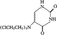 | 释义 | 乌拉莫司汀 C8H11C12N3O2=252..10 CAS-66-75-1 5-[双(2-氯乙基)氨基]-2,4-(1H,3H)-嘧啶二酮。 5-[bis(2-Chloroethyl)amino]-2,4-(1H,3H)-pyrimidinedione. 5-[双(2-氯乙基)氨基]尿嘧啶。 5-[bis(2-Chloroethyl)amino]uracil. 抗肿瘤药。 乌拉氮芥,尿啶芥。 Uracil Mustard(USAN),Uramustine,Desmethyodopan NSC-34462,U-8344. INN,BAN,NF,NFN,USAN,USP,MI.