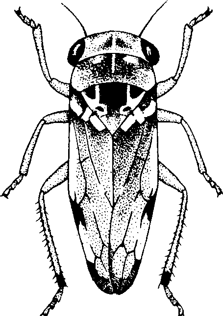 | 释义 | 杧果扁喙叶蝉mango leafhopper为害杧果嫩梢、叶及幼果的刺吸式害虫。学名Idioscopus incertus (Baker)。同翅目,叶蝉科。分布于印度、爪哇、菲律宾、新加坡、斯里兰卡及中国广东、广西、福建、云南、台湾等省区,是杧果的主要害虫之一。群集于嫩梢、嫩叶、花穗、幼果及果柄上吸取汁液,在幼嫩组织上产卵造成伤口,使受害部位坏死,萎缩或落花落果。排泄“蜜露”,诱发烟霉病,影响植株生长。成虫体呈暗褐色,体长4~5.5毫米,绿色略带褐色。头短而宽、头顶黄色,颜面黄褐色,前胸背板散生黑色小刻点。小盾片前缘有3个黑斑、中间的1个较大,其后方近中央处还有两个明显的黑点,两黑点的外侧各有一新月形白斑,小盾片两侧缘后半部白色,构成一“V”形白带。前翅黄褐色,半透明,翅基有4个排列成一列的不规则白斑,前缘中区土黄色,其后方和翅端各有一长方形的黑斑(见图)。卵长椭圆形,微弯曲,白色至黄色。末龄若虫体长约4毫米,头、胸土黄色,有暗色斑,腹部黑色,背面前方有一大黄斑。年生多代。在海南一世代历时约80天,卵期3~4天,若虫期8~11天,成虫寿命66天,世代重叠。卵散产在花梗、嫩梢表皮下或嫩叶背面主脉中,产卵处呈一梭形伤痕,外有一束白色蜡质物遮盖,每雌可产卵70多粒。宜在嫩梢期,特别是花蕾和幼果期,喷洒马拉硫磷、乐果,敌敌畏或拟除虫菊酯类等进行防治。