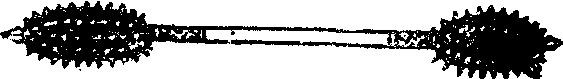 杵棒 ☚ 杆棒 狼牙棒 ☛ 杵棒 杵棒古代稀有兵器的一种。全长五尺,尖长一寸二分,两大头长为一尺五寸,上端的大头上有小刺四十八个,下端的大头上有小刺五十个。小刺长五分,具有刺、拖、劈、戳、撩、锯、扫等作用。使用此兵器的人,力量要大,能以“车轮式”连伤数敌。(图62)。