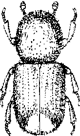 松六齿小蠹pine sixdentate bark beetleIpsacuminatus Gyllenhal,又称树顶小蠹。鞘翅目,小蠹科。分布于黑龙江、吉林、辽宁、河北、四川、云南、陕西、新疆、内蒙古等省区;日本、朝鲜、韩国、蒙古、俄罗斯也有分布。成虫体长2.4~3.7 mm,黑褐色,有光泽,全体被黄色长绒毛;前翅黄褐色,末端呈斜凹面,每侧有齿3个。幼虫体长约3.8mm,乳白色,圆筒形,常向腹面弯曲呈马蹄状。年生1代。以成虫越冬。为害多种松树和云杉。食性随地理分布而有差异。坑道为复纵坑。成虫与幼虫均能为害活立木及倒木,造成工艺性的损失。宜保持林地卫生。用饵木诱杀;水浸原木杀虫;喷洒药剂毒杀幼虫和成虫可减轻危害。