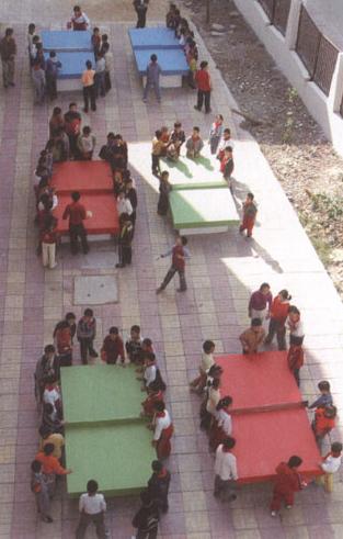 俱乐部联赛自1995年以来稳步发展,已有3个级别;竞技水平最高的是超级联赛,共有男女各12个队,实行主客场制。 除国家队的选手之外,一些其他国家乒乓球协会的运动员也纷纷加入中国乒乓球超联队伍;外援的加盟丰富了中国的乒乓球赛场,使联赛有了更多看点。甲A和甲B联赛的参赛队伍更多,甲B已有男女各50多个队。 为了开拓乒乓球竞赛市场,扩大乒乓球的影响,中国乒协还与中央电视台合作,于1996年创造性地举办了CCTV杯中国乒乓球擂台赛,此后又发展成爱立信中国乒乓球擂台赛、国际乒乓球擂台赛以及17岁以下国际青少年擂台赛;既有高水平的竞技,又检阅青少年的水平,还有群众参与,把乒乓球运动的竞技性、观赏性、娱乐性、知识性融为一体。 擂台赛6年来在全国各地的中小城市举办了100多场比赛,通过电视屏幕传入千家万户,有力地推动了中国乒乓球运动的进一步普及。 据统计,目前中国经常打乒乓球的人口约1000多万;参加业余体校和重点少年体校训练的少年运动员有3万多人,在中国乒协注册的成年职业和业余少年运动员近2000人;最高水平的国家一队、二队运动员近100人,构成了一座目标一致、层层衔接的人才“金字塔”。  校园里的“乒乓地带” |