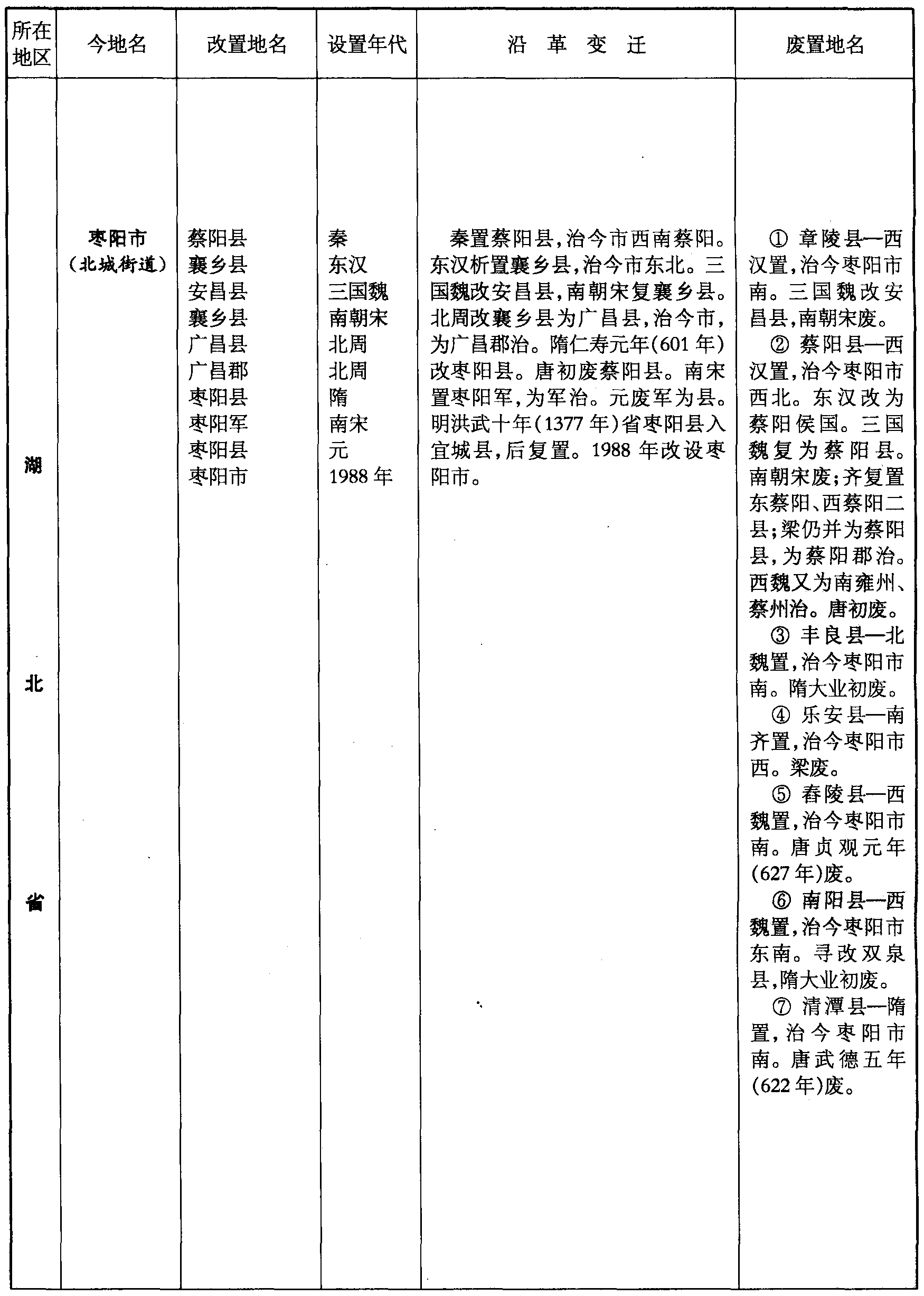 ❼ 清潭县—隋置,治今枣阳市南。唐武德五年(622年)废。