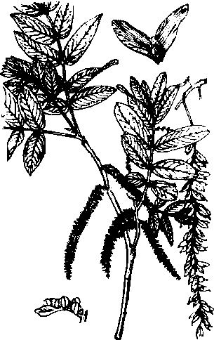 近似种有滇桂枫杨(P. tonkinensis)和甘隶枫杨(P.macroptera)。 枫杨Chinese wingnutPterocarya stenoptera C.DC.,又称平柳、水麻柳、大叶柳、枫柳。胡桃科,枫杨属。落叶乔木,高达30 m,胸径1 m。小枝髓心片状分隔。裸芽,密被锈褐色腺鳞。羽状复叶,叶轴具翅;小叶矩圆形或矩圆状披针形,上被腺鳞。柔荑花序。果序长20~40 cm;坚果具2斜展翅,翅长1~2cm。分布于陕西南部、湖南、山东及其以南地区,西至四川、云南,海拔1 000 m或1 500 m以下,为溪边及水湿地习见树种。喜光,耐水湿,深根性。木材轻软,供家具、农具、火柴杆等用。树皮含纤维,质坚韧,用途多种。茎皮及树叶可灭钉螺。为黄河、长江流域及以南地区平原造林、固堤护岸及“四旁”优良速生树种。