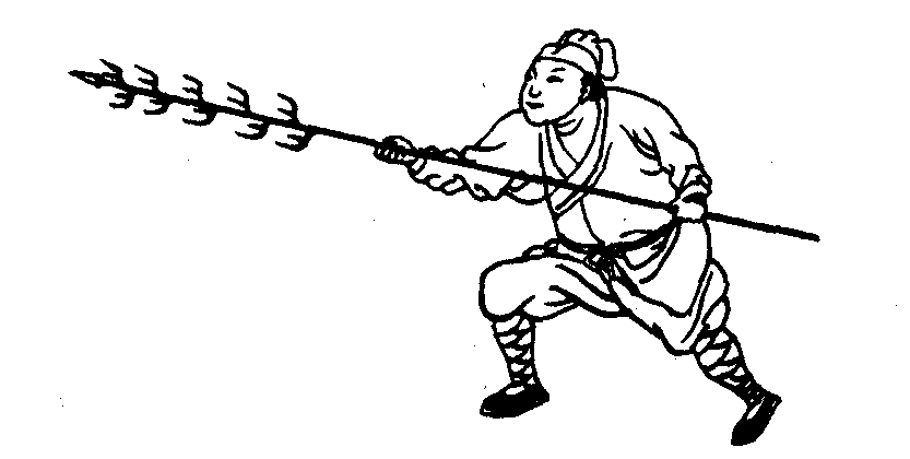 狼筅技法。此势主要用于防守。 《纪效新书·狼筅总说篇》:“架上势,枪打高来须用架,架时管上又管下。阴阳反覆脚如风,铁柱金刚也戳怕。”