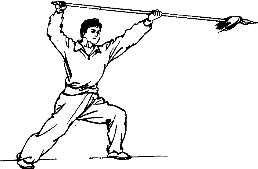 | 释义 | 架枪 架枪枪法。枪身平举或倾斜举过头顶。属防守性枪法。动作有两手将枪杆横架于头上;也有两手将枪杆成斜面架于身前上方,枪杆略高于头。在民间枪术套路中,有“架樑枪”、“大架樑”等枪法。